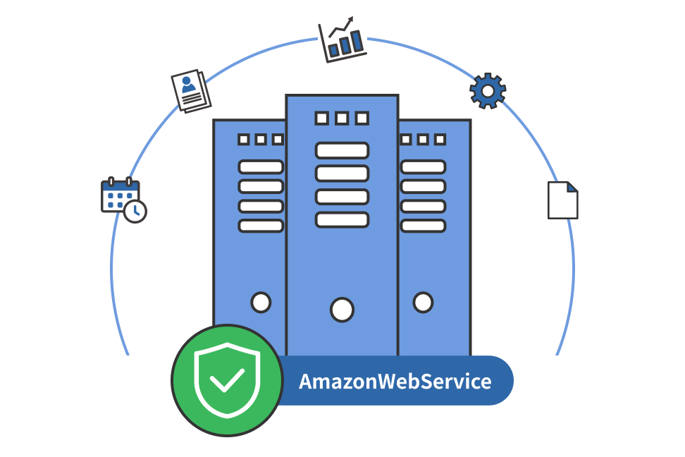データの保管先は、アメリカの政府機関でも使用されている信頼性の高いAmazonWebServiceを利用しています。そのため、災害があったりパソコンが故障してしまっても、データは安全ですので、BCP対策にも有効です。
