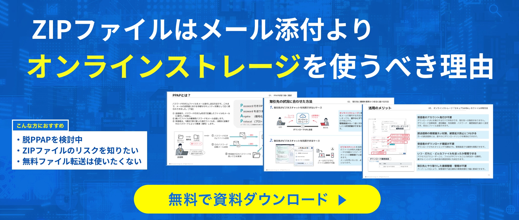 こうした背景の中、メール添付に代わる手段として、オンラインストレージを活用したファイル共有が注目されており、セキュリティ対策や利便性を兼ね備えた方法への移行が、多くの企業で進められています。